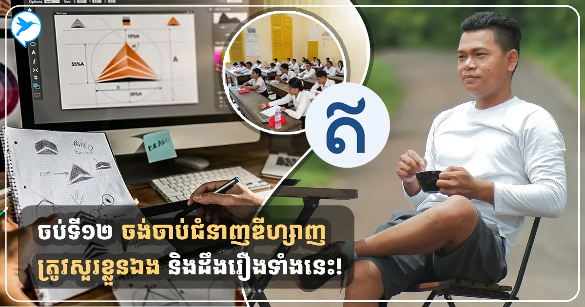 សរុបមកស្រាប់សិស្សថ្នាក់ទី១២ ដែលចង់ចាប់យកជំនាញឌីហ្សាញ គឺត្រូវតែសួរខ្លួនឯងឱ្យច្បាស់ថា ខ្លួនឯងស្រឡាញ់ឬអត់? និងហ៊ានលះបង់ពេលវេលាសម្រាប់ជំនាញនេះទេ ដើម្បីយើងចាប់ផ្ដើមស្វែងរកសាលារៀនអំពីមូលដ្ឋានគ្រឹះនៃ Tools នីមួយៗ។ ត្រង់ចំណុចខាងលើនេះដែរ ខ្ញុំចង់សង្កត់ធ្ងន់បន្តិច ព្រោះខ្ញុំបានឃើញប្អូនៗមួយចំនួន គាត់ចង់ចេះជំនាញក្រាហ្វិចឌីហ្សាញ គាត់ចាប់ផ្ដើមរត់ទៅរៀនអាយធី ដោយសង្ឃឹមថា មេរៀនអាយធីនៅក្នុងសាកលវិទ្យាល័យ មានជំនាញនេះ ប៉ុន្តែខ្ញុំសុំលើកទឹកចិត្តថា ប្អូនៗគួរតែចាប់ផ្ដើមរៀនជំនាញឌីហ្សាញ នៅតាមមជ្ឈមណ្ឌល ឬវិទ្យាស្ថានណាមួយ ដែលគេផ្ដោតសំខាន់លើជំនាញនេះ ហើយពេលរៀនរួច អាចចេញធ្វើការតែម្ដង វាចំណេញជាង។”