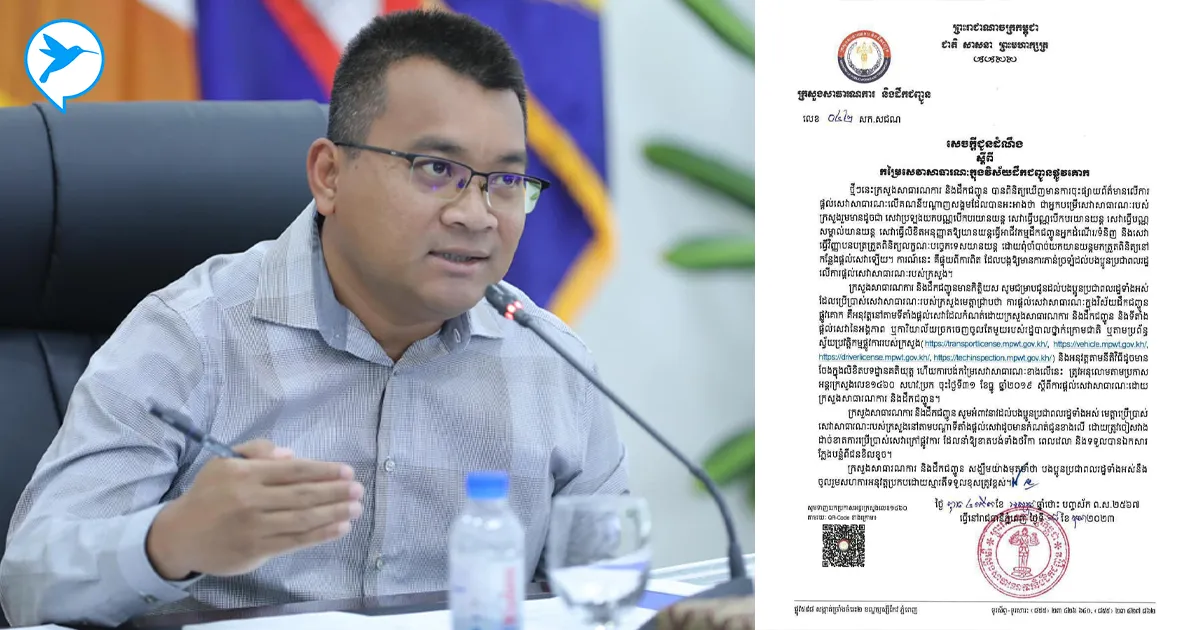 ដោយក្រសួងសាធារណការ និងដឹកជញ្ជូន បានពិនិត្យឃើញមានការចុះផ្សាយព័ត៌មានលើការ ផ្តល់សេវាសាធារណៈលើគណនីបណ្តាញសង្គមដែលបានអះអាងថា ជាអ្នកបម្រើសេវាសាធារណៈរបស់ ក្រសួងរួមមានដូចជា សេវាប្រឡងយកបណ្ណបើកបរយានយន្ត សេវាធ្វើបណ្ណបើកបរយានយន្ត សេវាធ្វើបណ្ណ សម្គាល់យានយន្ត សេវាធ្វើលិខិតអនុញ្ញាតឱ្យយានយន្តធ្វើអាជីវកម្មដឹកជញ្ជូនអ្នកដំណើរ/ទំនិញ និងសេវា ធ្វើវិញ្ញាបនបត្រត្រួតពិនិត្យលក្ខណៈបច្ចេកទេសយានយន្ត ដោយពុំចាំបាច់យកយានយន្តមកត្រួតពិនិត្យនៅ កន្លែងផ្តល់សេវាឡើយ ដែលសុទ្ធសឹងតែខុសពីការពិត ឥឡូវក្រសួងបានប្រាប់វេបសាយ ឬប្រព័ន្ធចំនួន៤សំខាន់ៗ សម្រាប់ប្រជាពលរដ្ឋចូលបំពេញបែបបទធ្វើដោយខ្លួនឯង។