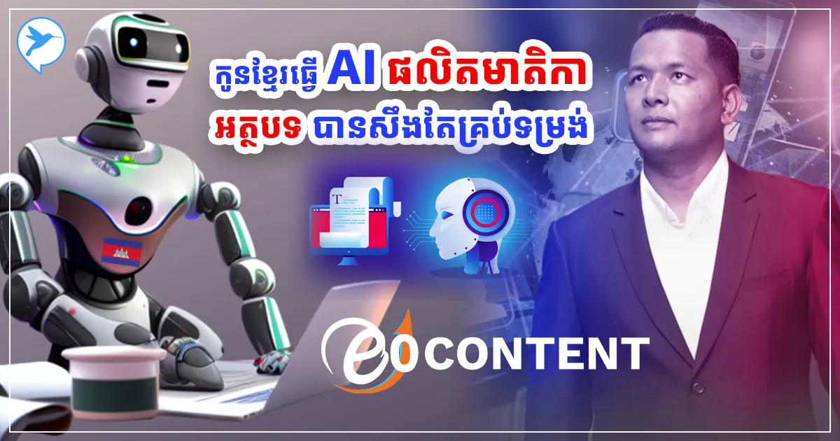 ប៉ុន្មានខែចុងក្រោយនេះ ពិភពលោកបានងាកទៅចាប់អារម្មណ៍នឹងបច្ចេកវិទ្យាថ្មីៗ ពាក់ព័ន្ធនឹងបញ្ញាសិប្បនិមិត្ត ឬ AI (Artificial intelligence) ដែលកំពុងតែវាយលុកយ៉ាងខ្លាំងលើអ៊ីនធើណេត ពិសេសគឺ ChartGPT របស់ក្រុមហ៊ុន Open AI និង Bing របស់ក្រុមហ៊ុន Microsoft ជាដើម។ ជាមួយនឹងភាពល្បីល្បាយនៃ AI នៅបរទេសនេះ ក៏មានកូនខ្មែរយើងមកពីខេត្តសៀមរាប បានធ្វើប្រភេទ AI ដែលមានសមត្ថភាពពិសេសមួយឈ្មោះ eOcontent ដែល AI នេះអាចផលិតអត្ថបទបានសឹងតែគ្រប់ប្រភេទ ជាភាសាអង់គ្លេស និងជិត៣០ភាសាទៀត ដោយយើងគ្រាន់តែវាយចំណងជើង ឬឈ្មោះប្រធានបទដែលយើងចង់បានប៉ុណ្ណោះ។